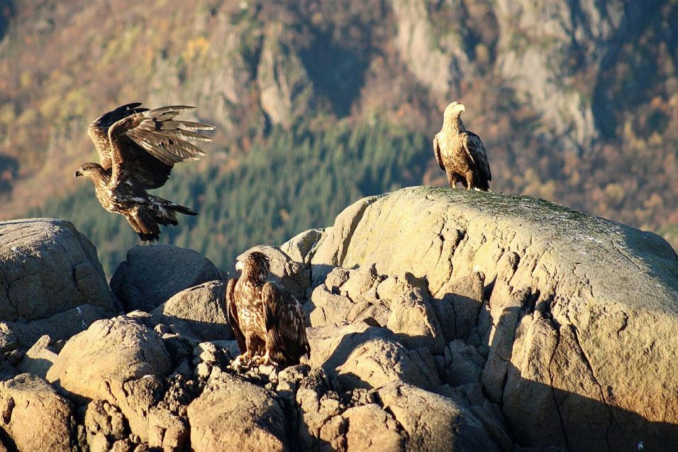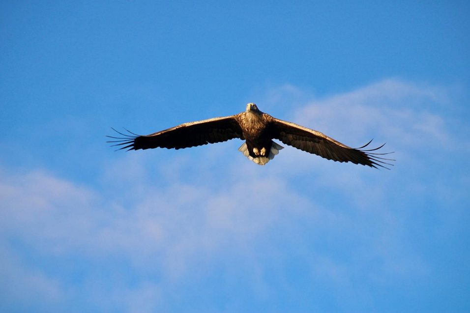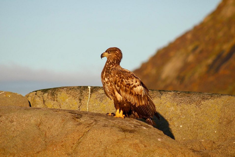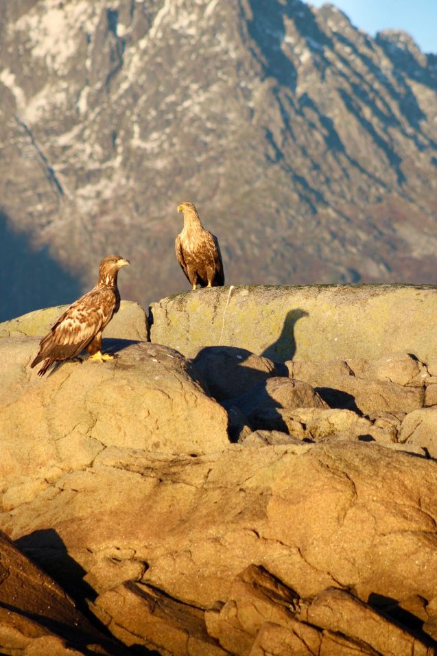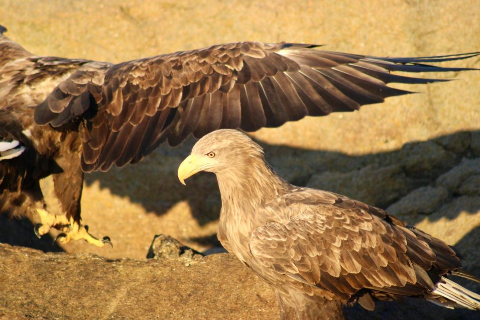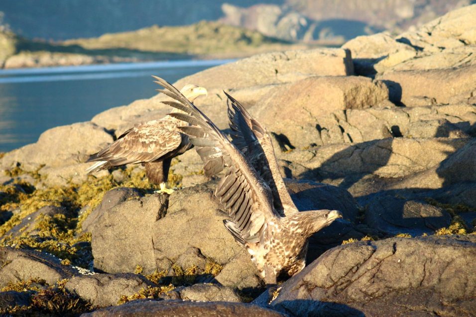Die Seeadler erkennen die RIB Boote übrigens schon von Weitem. Es naht leichte Beute! Um die Tiere den begeisterten RIB`lern näher zu bringen, werden sie mit Fischen angelockt. Im Flug fangen oder greifen sie die zugeworfene Beute und besetzen die umliegenden Felsen. Es ist wirklich ein ganz besonderes Schauspiel, die mächtigen und kraftvollen Raubvögel so erleben zu dürfen! Seeadler können übrigens bis zu 40 Jahre alt werden, haben eine Spannweite bis zu 2,50 m, sind reviertreu und bleiben mit einem Partner ein Leben lang zusammen.