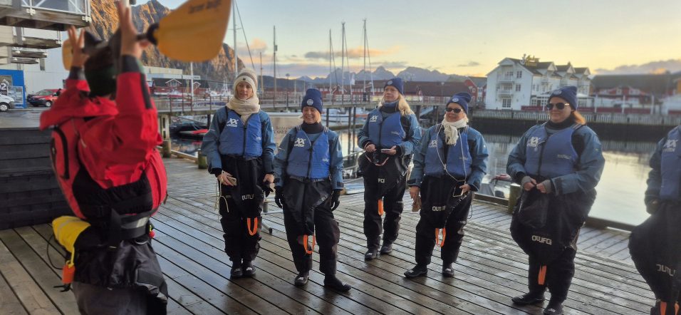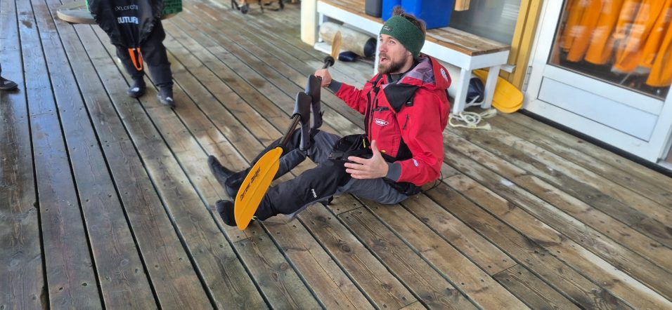 Der zweite Tag nach einer herrlichen Nacht. Nach einem tollem Frühstück (auch vegetarisch/vegan geeignet), starteten wir je nach Gruppe zu einer Angeltour auf einem traditionellen Kutter oder zu einer Kajak-Fahrt. Wir konnten uns im Vorfeld zwischen beiden Varianten entscheiden. So waren die Gruppen schnell gefunden und los ging es für mich zum.. Kajak fahren 😉 . Wir wurden in dicke, wasserdichte Overalls gepackt und mit allerlei Equipment ausgestattet, so dass wir das Gefühl hatten, mit dem Kajak zu verschmelzen.. schön mollig warm. Dann noch eine kurze Einweisung durch unseren erfahrenen Tour Guide und schon konnten wir im Zweier-Team mit unseren Kajaks starten.