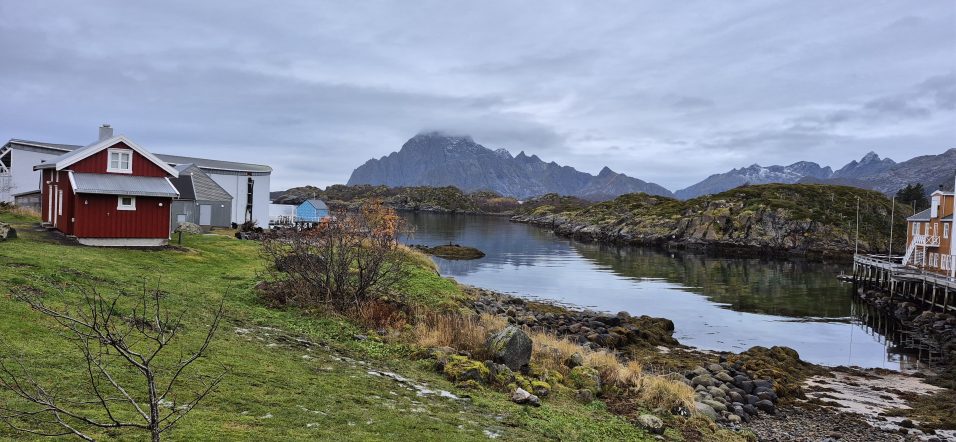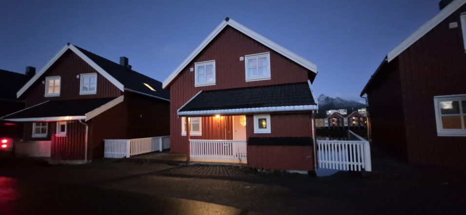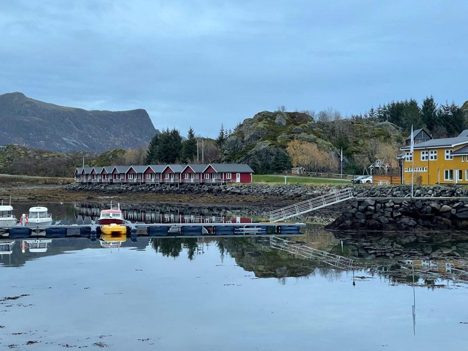 Unsere erste Übernachtung sollte in den für die Lofoten so typischen „Rorbuer“ sein. Gelegen auf einer kleinen Insel und nur durch eine Brücke mit der Hauptstadt Svolvaer verbunden, haben diese markanten roten Fischerhütten mit unterschiedlichsten Ausstattungsvarianten ihren ganz besonderen Charme.