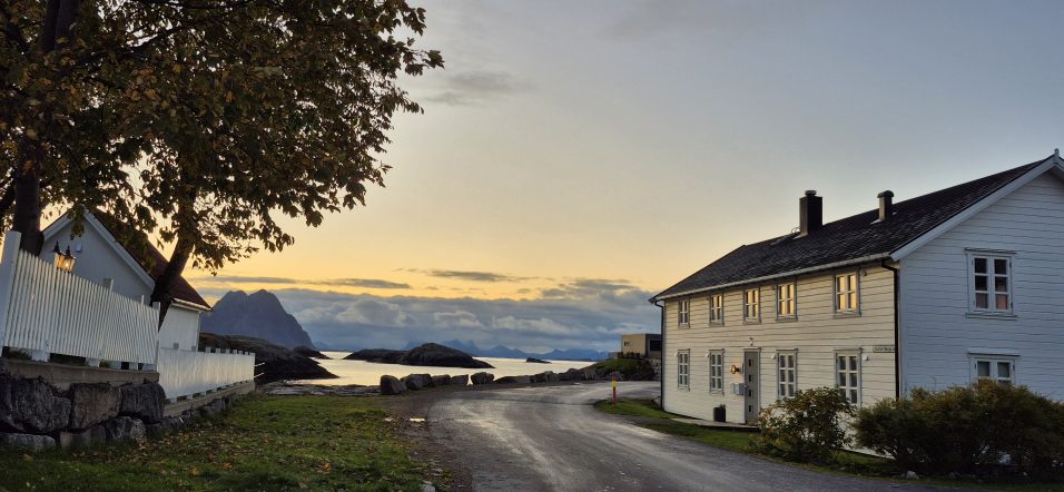 Die mittelalterliche Stadt Vagar hatte hier ihren Sitz. Das Hauptgebäude von 1815, authentische Fischerhütten und Bootshäuser mit Nordlandbooten können hier immer noch besichtigt werden.