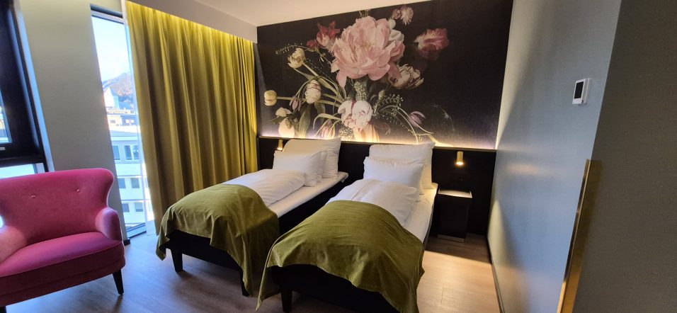 Die Empfangshalle ist geräumig und mit vielen Sitzmöglichkeiten ausgestattet. Kaffee, Tee und verschiedene Softgetränke gibt es kostenlos am Getränke Buffet (Self-Service). Die Zimmer sind sehr geräumig, zum Teil behindertengerecht, die Betten sehr bequem und zudem mit einem riesen Kissenmenü ausgestattet. Wer Lust hat, kann auf der hoteleigenen Sauna-Insel mit Blick auf den Fjord und Sprungbrett vom Dach, Körper und Geist erfrischen.