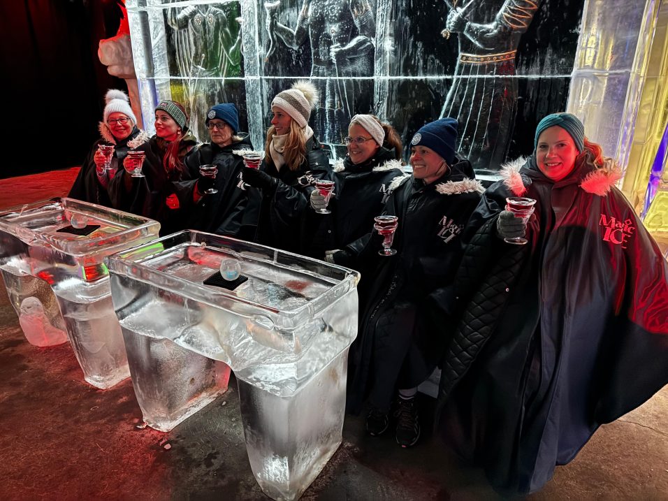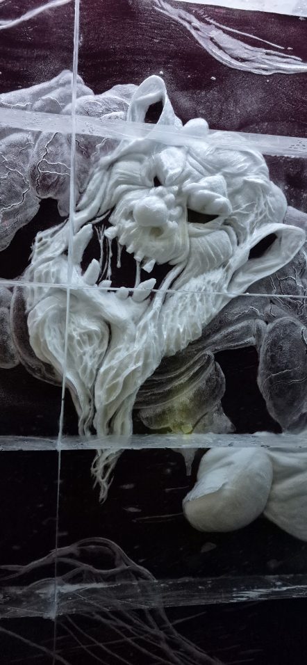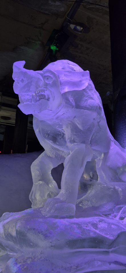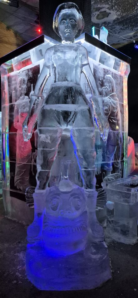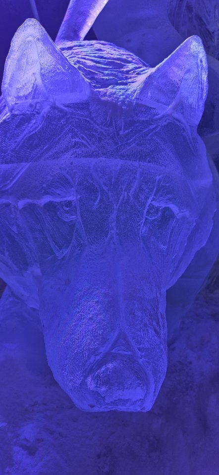 Auf der Rückfahrt nach Skarungen gab es für uns noch ein Highlight in Svolvaer, das „Magic Ice“. In einer großen Industriehalle, 100m vom Thon Hotel Svolvaer, ist eine permanente Eis-Skulpuren-Ausstellung Zuhaus. Wer möchte, wird mit einem dicken Cape ausgestattet und kann die illuminierten Kunstwerke bestaunen. Auch hier meine absolute Empfehlung für Euch!