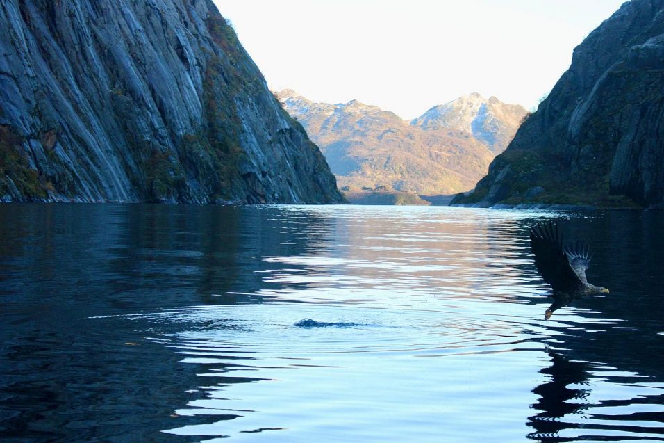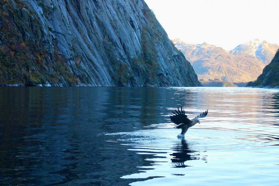 Auf, Richtung Trollfjord und zur Seeadler Safari! Eine unglaubliche Erfahrung! Die Schnelligkeit auf dem Wasser macht einfach nur Spaß! Berge, Häuser und Landschaften fliegen nur so vorbei, während man gut und sicher auf einer Art gepolsterter Balken mit Griff sitzt und einen wunderbaren Panoramablick hat- eine mega Erfahrung!