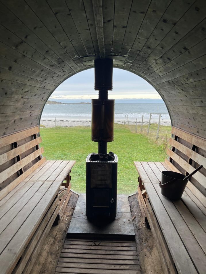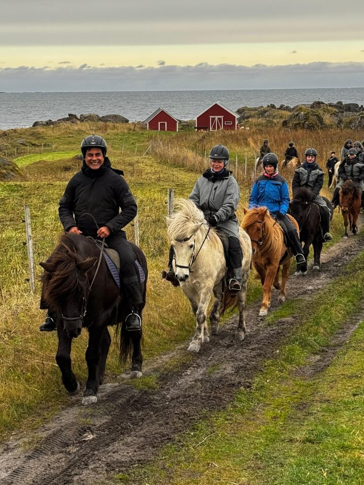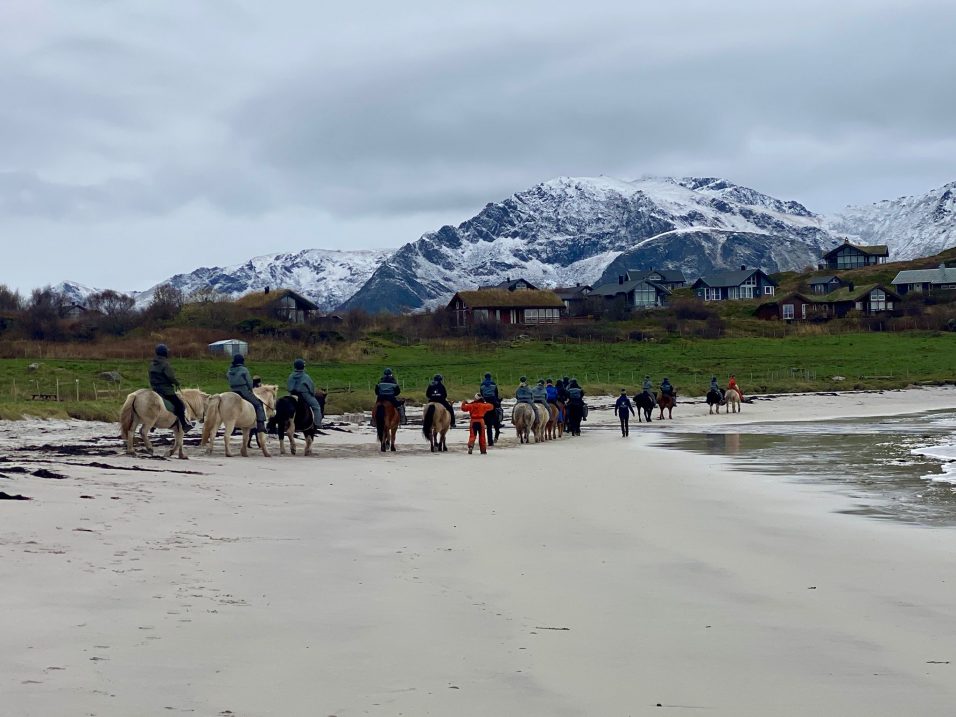 Unser vierter Tag brachte uns auf die rauhe, wunderschöne Insel Gimsoy. Hier wartete auf uns eine bunte Truppe von Isländer. Weiß, braun, schwarz, größer und kleinere Pferde hielten uns ruhig und sanft auf ihrem Rücken. Hov Gard ist idyllisch gelegen und bietet neben individuellen Reitausflügen auch Übernachtunsmöglichkeiten, je nach Geldbeutel im Gästehaus oder auf dem Camping-Platz. Eine Fass-Sauna am Strand gehört ebenso dazu. Im gemütlichen Restaurant kann gefrühstückt oder auch zu Abend gegessen werden. Kjersti Managerin und gute Seele des Hofes macht so ziemlich alles möglich.