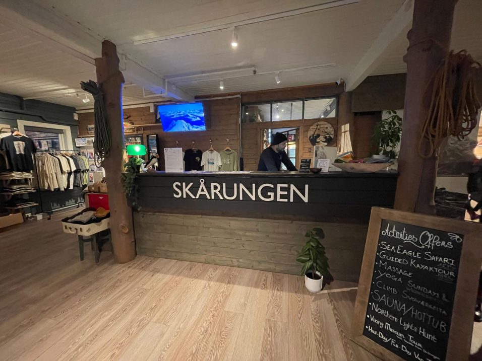 Ob nun ganz traditionell oder auch futuristisch angehaucht, mit direktem Blick vom Bett auf die Nordlichter (Decke aus Glas), auf dem Campingplatz mit Strom-Versorgung oder Stellplatz für´s Wohnmobil (große, picobello saubere Wasch- und Duschräume vorhanden), in Skarungen findet jeder seinen Platz. Wir haben uns in den unterschiedlichsten Wohnungsvarianten sehr wohl gefühlt. Die Sauna mit Blick über den Fjord und der beheitzte Whirlpool gehören sicherlich zu den schönen Annehmlichkeiten von Skarungen.