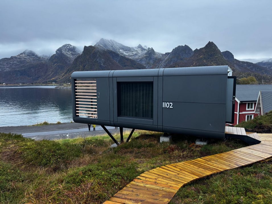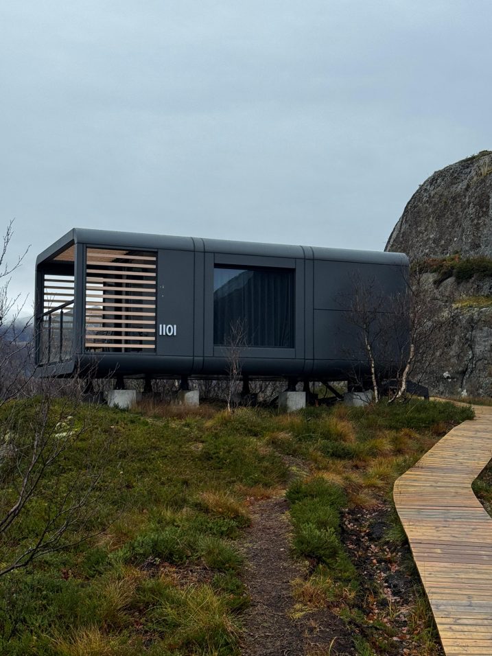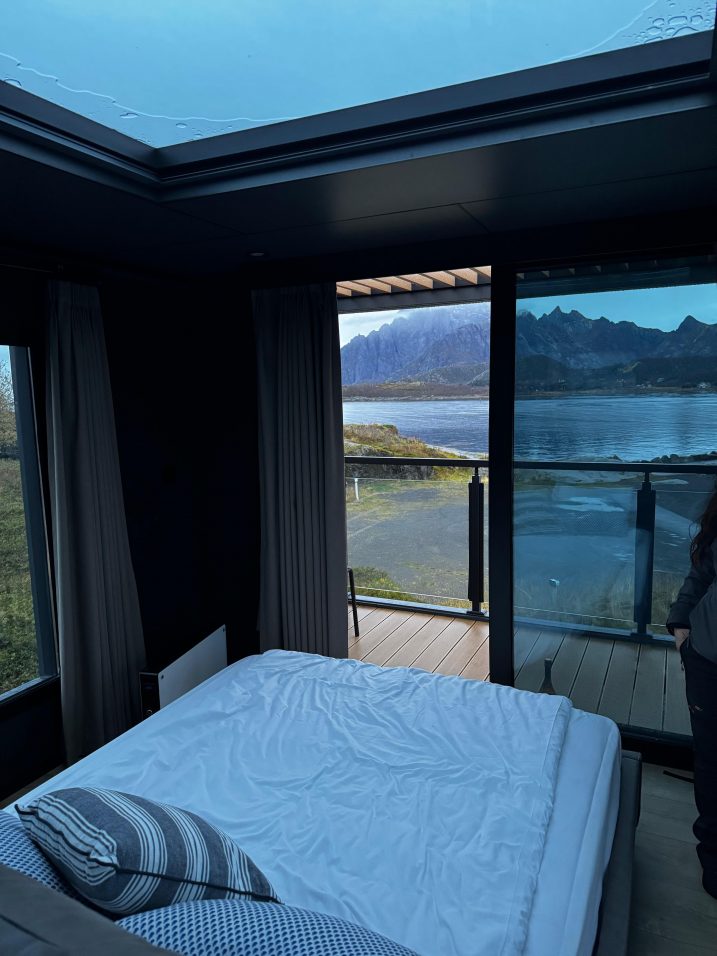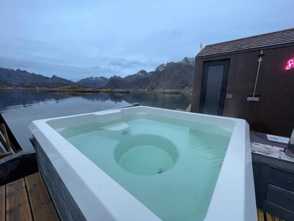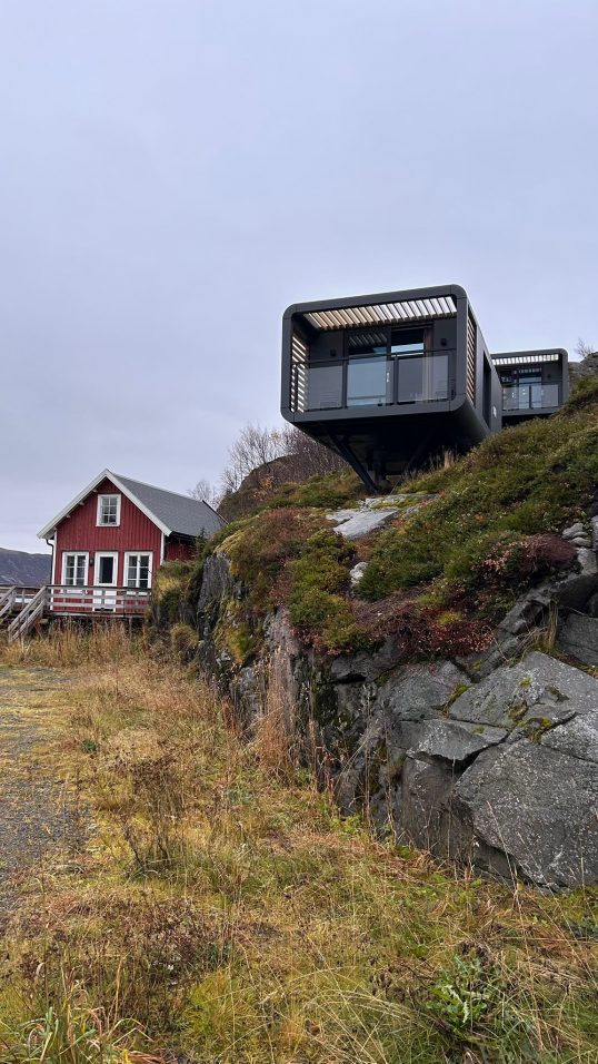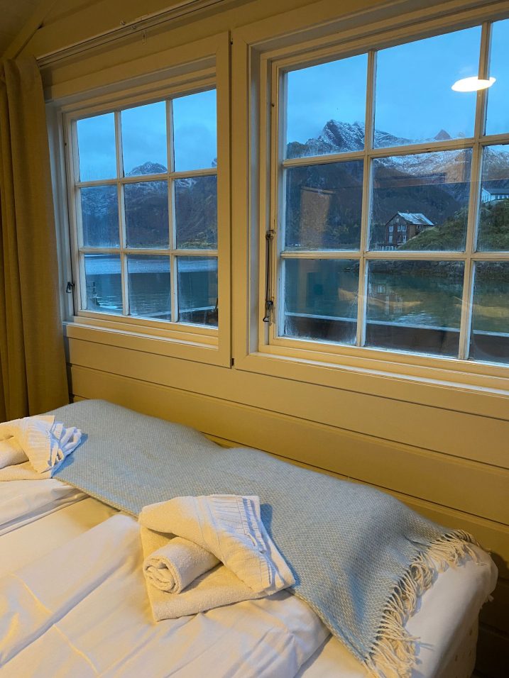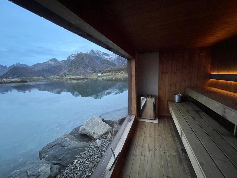 Wir brachen auf in unser letztes Hotel, Skarungen. Skarungen liegt direkt am Fjord in Kabelvag, nicht weit entfernt von Svolvaer. Auch hier gibt es unterschiedlichste Ausstattungen vom DZ im Hauptgebäude, über Cabins, Waterfront Cabins direkt am Wasser oder die Top Row Cabins mit Panoramafront. Es gibt eine Panoramasauna mit beheiztem Outdoor-Whirlpool und eine eigene Bucht mit Strand bei Ebbe.