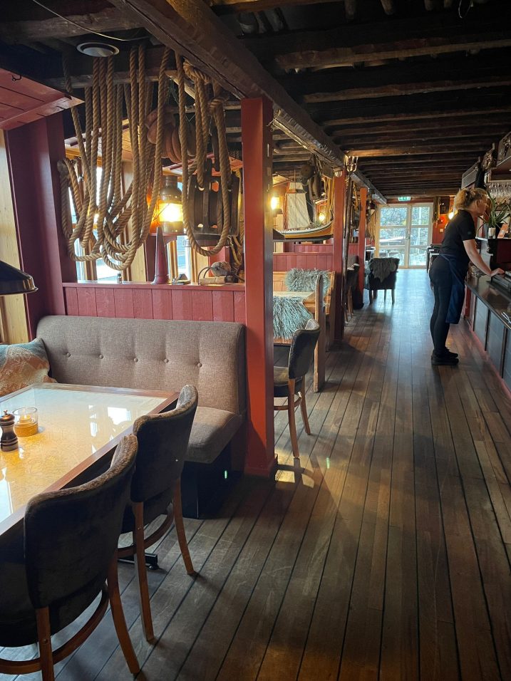 Sehr unterhaltsam und detailgetreu erzählte er uns alles zur vielfältigen Geschichte des heutigen Museums, bevor es eine Tür weiter in die „Borsen Spiseri“, in das historische Restaurant des ehemaligen Lagerhauses weiterging. Die originale, schwere Holzkonstruktion mit tief hängender Decke, dicken Holzbodendielen, dazu ein wärmender, knisternder Kamin und ein hervorragendes Abendessen, sollten den Tag gemütlich ausklingen lassen..